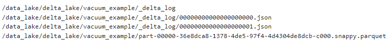 $ hdfs dfs -ls - /data_lake/delta_lake/vacuum_example