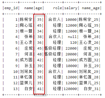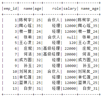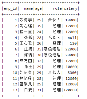 (13, "白安",31))).toDF("emp_id","name","age")