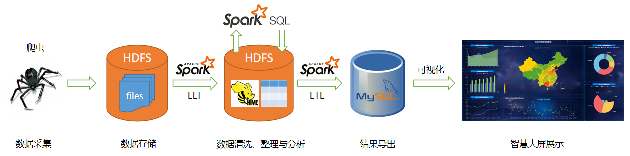 使用的技术栈:Python爬虫 + Hadoop + Spark + Hive + DataGear