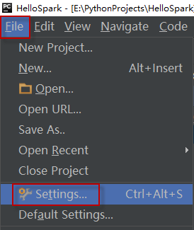 要安装pyspark包,请在PyCharm中导航到File > Settings ...,打开项目设置面板,如下图所示: