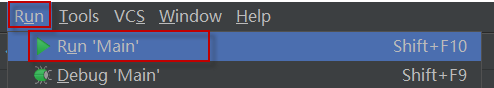 要运行程序,请从IDE菜单中单击Run > Run…并选择Main。如下图所示: