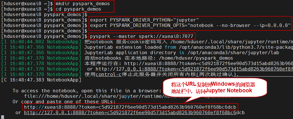 $ mkdir pyspark_demos $ cd pyspark_demos $ pyspark --master spark://xueai8:7077