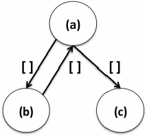 在下面的模式中,指定了从a到b以及从b到c的边,还有一条从c到b的边。这种模式通常表示当客户购买产品(a)时,她也可能购买(b),然后继续购买(c)。这可以表示对所购买的物品有一定的优先次序。此外,mitif中的强连通组件表明(b)和(c)之间的密切关系,如下图所示。