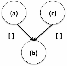 下面这种模式通常代表了这样一种情况:当顾客购买一种产品(a)时,她也会购买(b)和(c)其中之一,或都购买,如下图所示。
